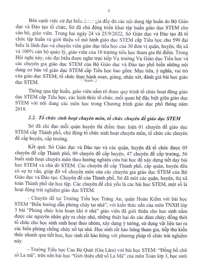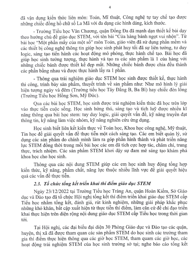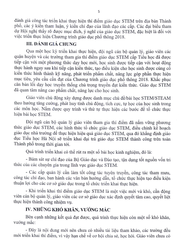 Báo cáo tổng kết triển khai thí điểm giáo dục STEM cấp tiểu học